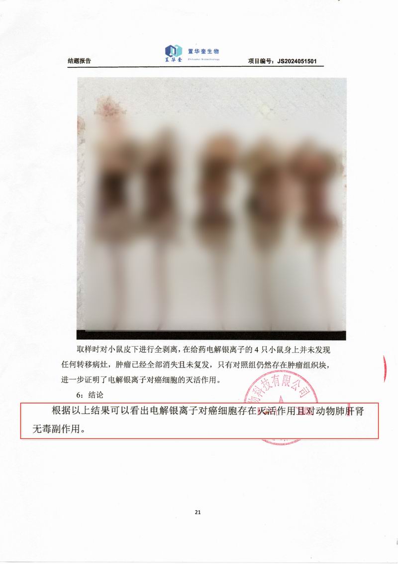 电解银离子对裸鼠肝癌治疗实现重大突破