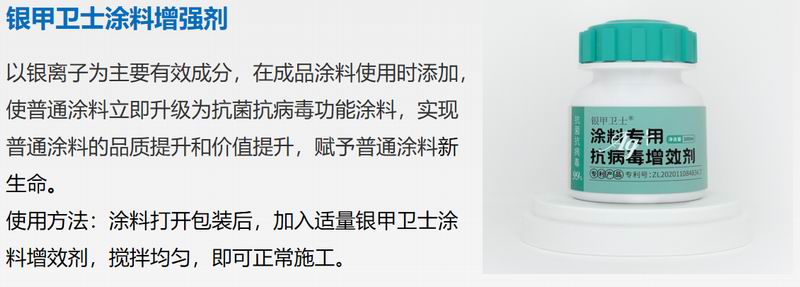 冠银生物纺织专用银离子拥有专利技术。采用银离子与改性胍复合抗菌技术,工艺先进,纺织面料可达到抗菌AAAAA 级,持久长效,稳定性好,浓度高,附着力强,耐水洗,安全环保,可快速渗透,适用于各类天然成分和合成纤维的抗菌后整理。
