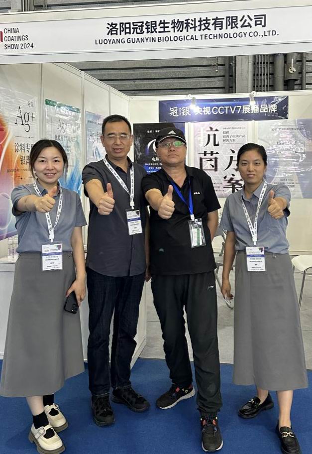 洛阳冠银生物科技有限公司的技术立足,不断创新产品应用,形成了银系抗菌剂系列产品,应用于化妆品、洗涤剂、纺织品、涂料等多行业领域。多年来,还相继参加了上海国际抗菌材料展、南京日化产品原料展、广州国际纺织供应链工博会、上海工博会、广州国际纺织工博会、广州日化展、广州涂料展等多个展会,不断展示公司的技术成果和应用成果。